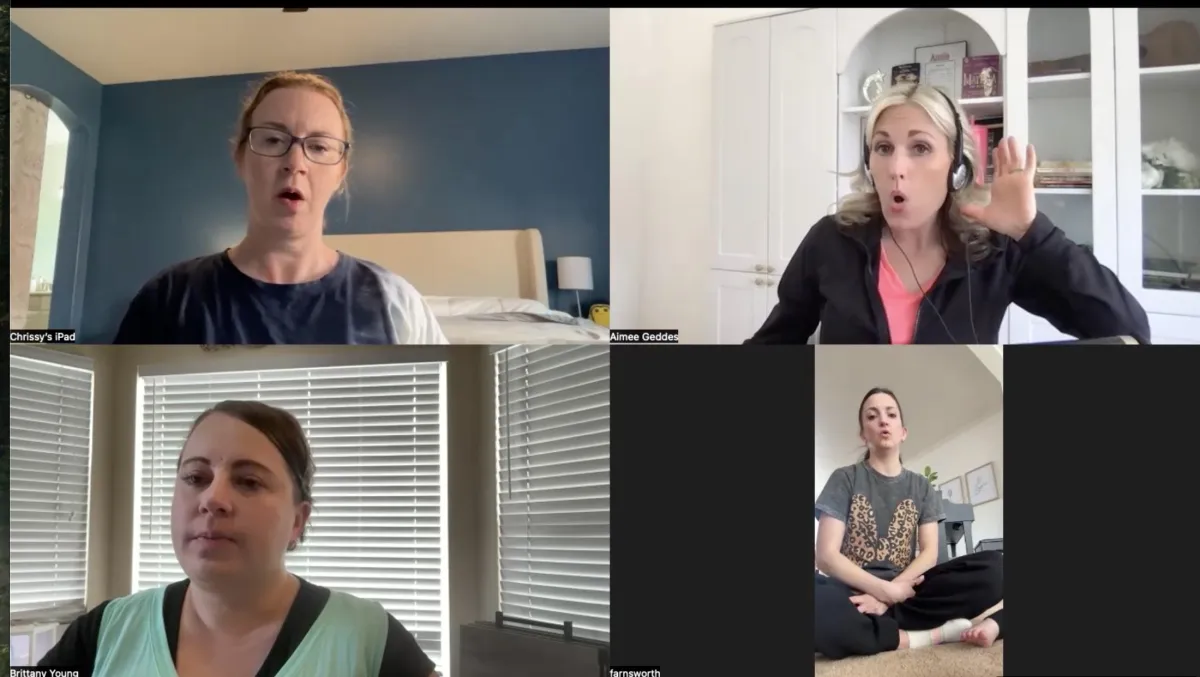 Every Tuesday morning, you'll gather live on Zoom for a 60-minute master class. Some sing, some observe—and everyone learns.